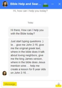 Just start typing questions 🙂 Ie… give me John 3:16, give me the original greek text, where in the bible does it talk about loving neighbors, give me the king James or NIV version of the verse, where in the bible does Jesus mention wine…. help me create a lesson for 6 year olds on Moses….